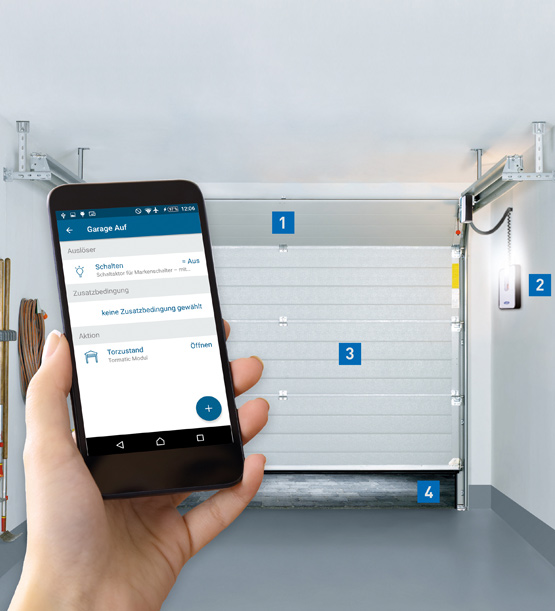 in addition to the heating, aircon, lighting and shade, security and monitoring, climate and environmental systems, you can also automate your Novoferm garage door. The SmartHome system is easy to install and impressively easy to use, as well as offering maximum security. You decide for yourself what is important: remote control, automation, individual timing profiles or a combination of all three.